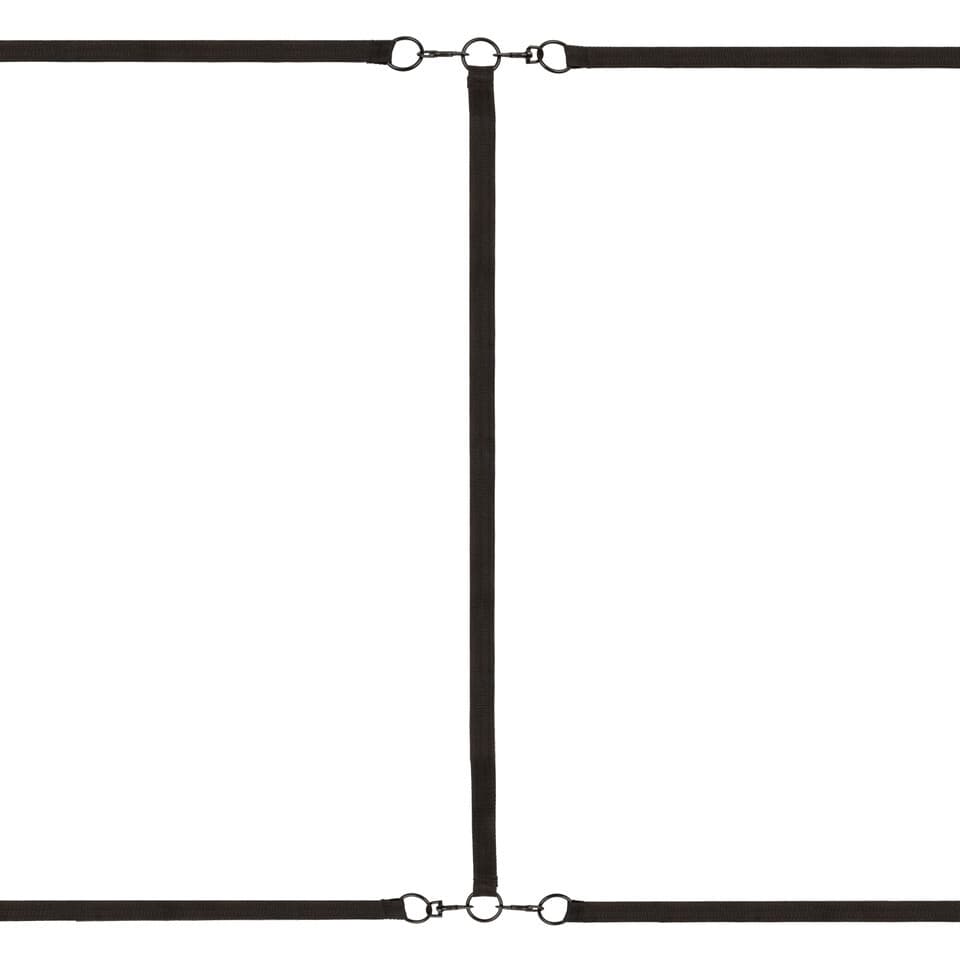 4 totally adjustable and detachable wrist or ankle cuffs. 4 sturdy, adjustable tethers to fit most mattresses. May be used under any bed or as individual tethers. Universal clasps and O-rings with swivel design for full dexterity. Soft and plushy interior with a vegan leather exterior. Double padded, double-stitched. Functional, durable and textured design.