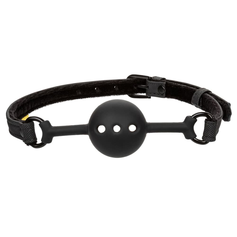 The Boundless Breathable Ball Gag is the perfect erotic accessory for couples looking to experiment with erotic restraint play or fierce fetishists looking to indulge their deepest desires. Surrender to your naughtiest fantasies as you secure the pliable silicone ball gag, designer vegan leather straps, and adjustable buckle closure. The pliable breathable ball delivers primal passion to your bedroom, while each muffled moan enhances pleasure and intensifies arousal for everyone involved. Dive deep into adventurous desire and indulge in your most erotic fantasies with this sensationally comfortable breathable ball gag.