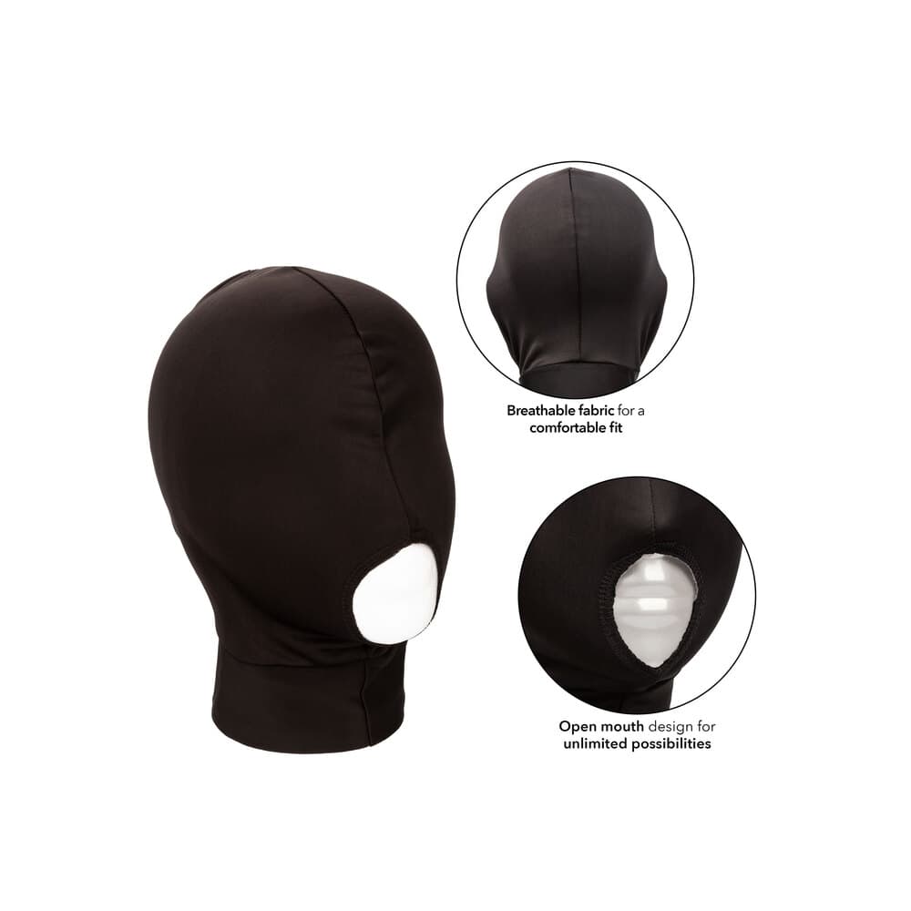 CalExotics Boundless Hood is ideal for couples looking to experiment with sensory pleasure play and dive into thrilling, erotic adventures. Expand the boundaries of your ecstasy in the daring open-mouth hood featuring breathable fabric, a stretchy fit, and a sight-restricting design. Surrender yourself to your lover every whim once you slip on this sensory deprivation hood. The luxuriously soft mask creates a sight-restricting sensation that heightens sensitivity, elevates pleasure and intensifies arousal for everyone involved. Give into primal desires and scandalous pleasure with the sexy open-mouth design