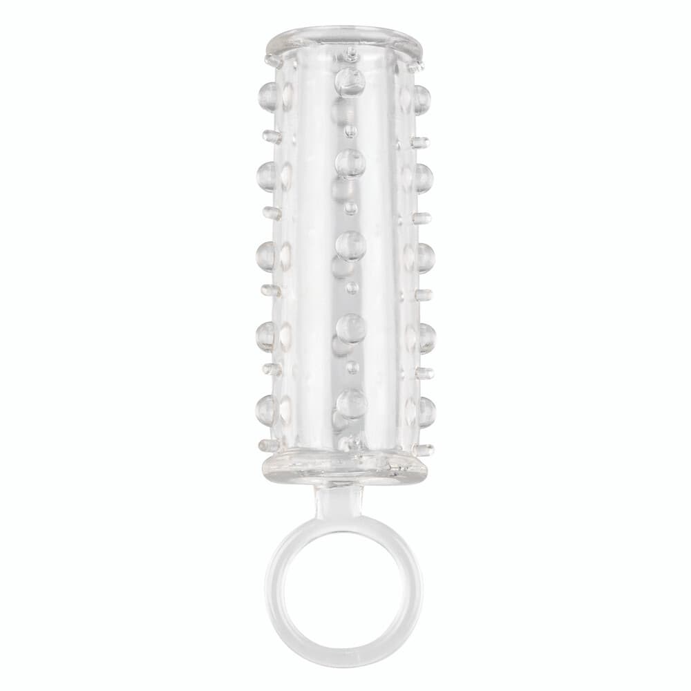 The Sensation Enhancer is a super tight, open-end extension sleeve with a sensually beaded shaft. The super-sized enhancer wraps tight around your pleasure tool to increase girth, length and pleasure. While you thrill your lover with increased girth and stimulating beads, the fulfilling enhancers powerful erection support and open-end design results in explosive results for both of you. The erotic enhancer sleeves ultra-stretchy material and the spacious chamber is made to fit even the biggest man. The textured chamber and built-in scrotum strap provide increase stimulation and powerful support. Wrap your pleasure tool in this super stretchy sleeve to easily increase stamina, stimulation and orgasmic pleasure. The flexible enhancer is made from a hygienically superior TPE. This body-safe material is unscented and phthalate free to keep your most sensitive spots happy and healthy.