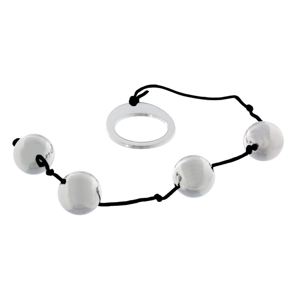 Experience the difference from the normal sex toy and experiment with the coldly erotic heavy metal! This desirable item is an adorable string of four shiny solid heavy metal anal beads with a metal loop handle. Designed with style for the elegance of erotic anal play, an essential and exciting sex toy for the ultimate climax. Feel the glorious sensations when extracting these wonderful anal balls! Metal manipulation for erotic experiences!