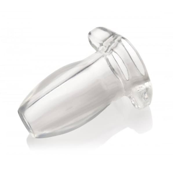 Open wide and let you partner peek inside with this large, unique anal toy. The Gape Glory allows you to discover a whole new part of your partner as you peer into the depths of their ass! This anal plug is clear and hollow for maximum visibility. The opening is also great for liquid play, whether you are delivering an enema or getting creative in other ways. A contoured base makes this plug comfortable for extended wear. This material is compatible with both silicone and water-based lubricants.