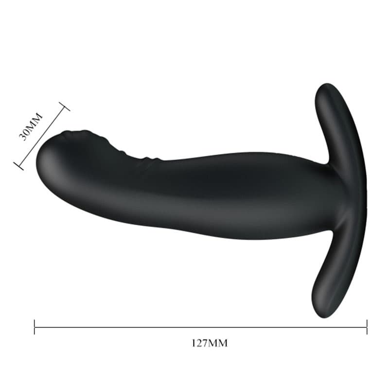 This prostate vibrator is made of smooth, black, skin-safe silicone. The unique shape of this vibrator is designed for comfortable insertion. In the head of the prostate vibrator is a ball that moves and provides an extra stimulating feeling.