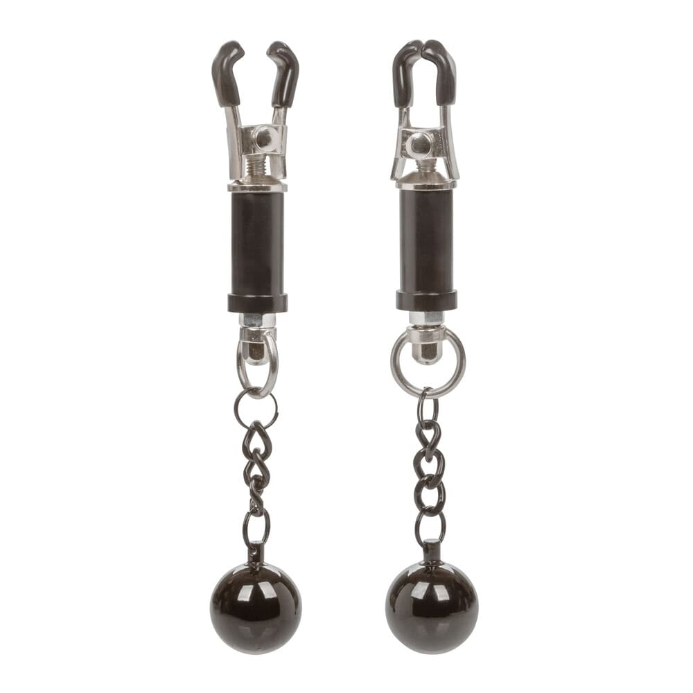Blur the borders between pleasure and pain even further with the game-changing Nipple Grips Weighted Twist Nipple Clamps. Explore elevated sensation with 2 adjustable nipple clamps, unique twisting design, and swinging weight. Clamp the naughty clasps to your body and enjoy every rush of stimulation. 43.5g 1.5oz weights for added stimulation