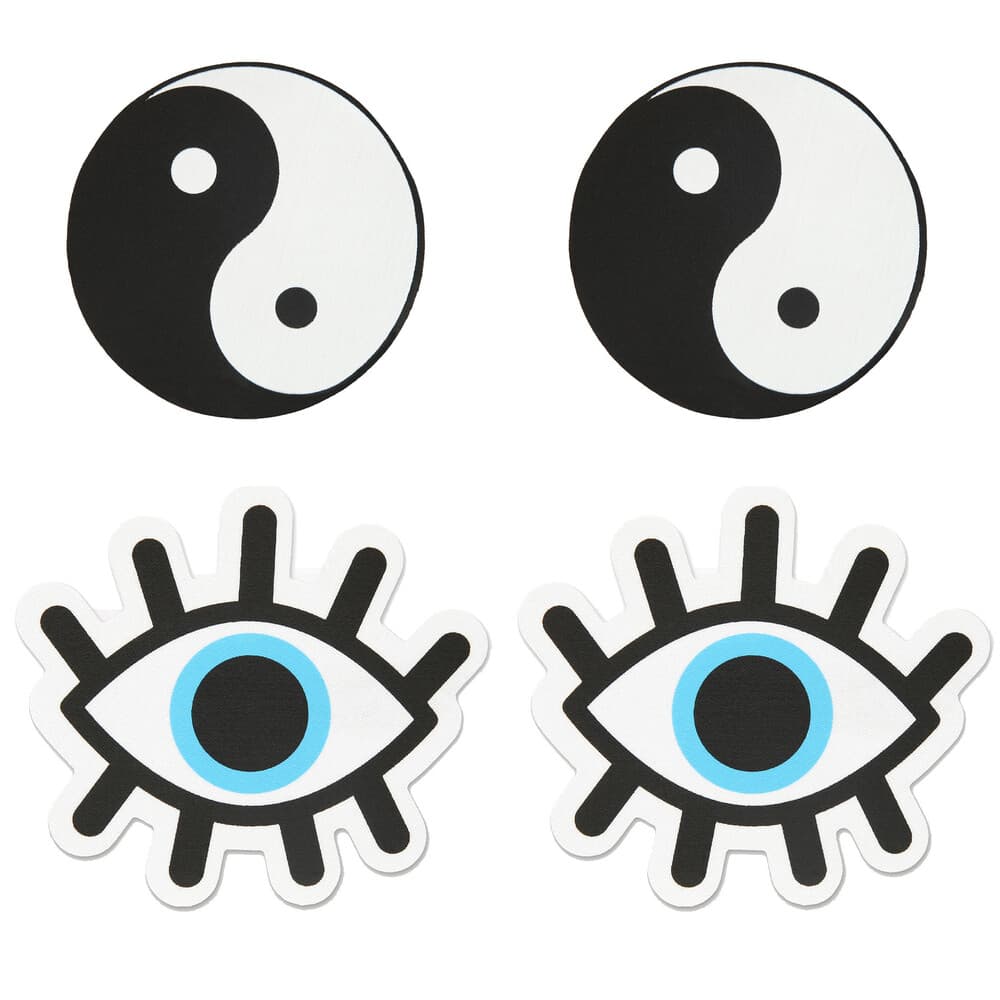 For whatever the occasion, Peekaboos Pasties has the perfect pasty for you. The high-quality, detailed pieces of the Peekaboos Pasties collection provide a vast assortment of styles. 2 Pairs of premium self-adhesive pasties. One pair of Yin and Yang and one pair of Evil eyes.