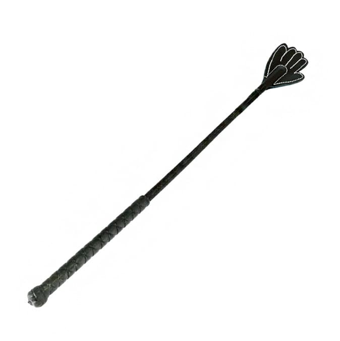 Genuine leather whip with small hand, Handle 6 x 0.5 Inches, Tail 9 x 0.3 Inches, Hand 3 x 2 Inches.