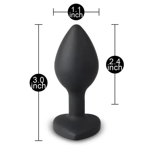 Small size black colour silicone anal plug with a heart shape diamond base.