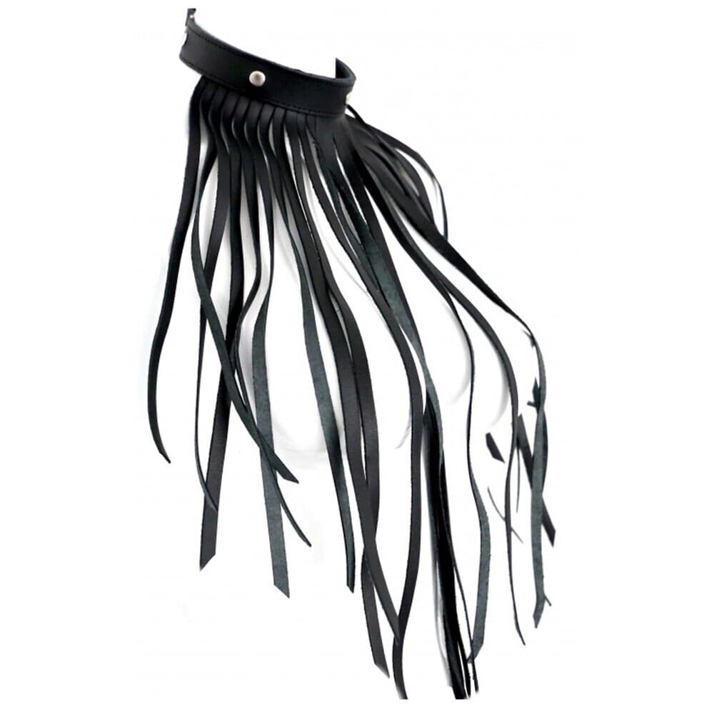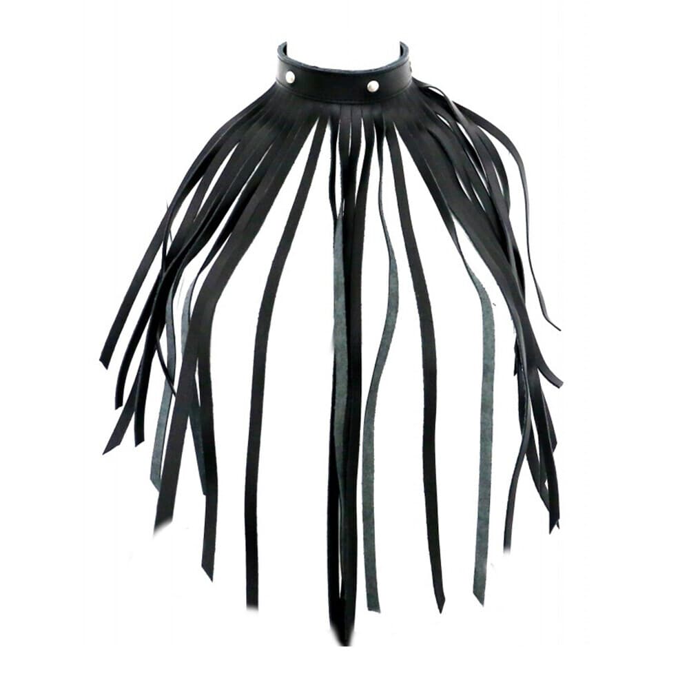 This leather fringed collar is an ideal accessory to highlight your chest. It consists of several fine and light bangs making it a very SM style. The neck size ranges from 30 to 45cm. The width of the necklace is 2.5cm. The fringes are positioned in a gradient with a maximum length of 45cm. Made of genuine cowhide leather