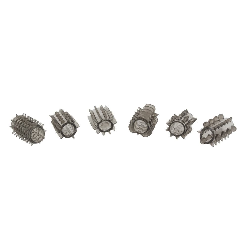 Great for delivering extra stimulation when indulging in penetration play or when masturbating we have the superb Toy Joy Black Power Penis Sleeve Set, a set comprising of six stretchy penis sleeves with differing surfaces to tickle and tease. Crafted in black coloured very stretchy jelly material the penis sleeves are strong and soft with bumps, tentacles, ticklers, nubs or a combination thereof to stimulate you and your partner with six different textures.