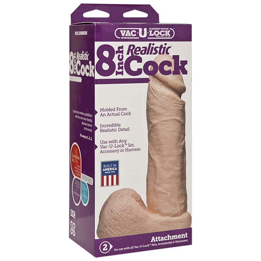 Take in all 8 inches of this realistic cock Vac-U-Lock attachment. The bulging veins, plush balls, and hand-painted detail will have you falling in love! Works with all Vac-U-Lock systems. FIRMSKYN Material for Greater Intensity Moulded Directly from a Real Erect Penis Incredibly Lifelike Look and Feel Textured Veins for Added Stimulation Use with Any Vac-U-Lock Compatible Harness or Accessory O-Ring Harness Compatible Phthalate-Free, Body-Safe Proudly Made in America